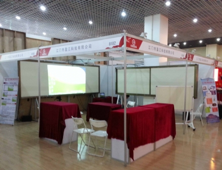 第61屆中國教育裝備展示會于2011年5月9日在陜西西安隆重舉行,本屆展示會主要以“展示、交流、合作、發(fā)展”為主旨,以“人文、科技、均衡”為特色,全面展示各級各類學(xué)校,在新時期所需的現(xiàn)代化教育技術(shù)裝備產(chǎn)品,交流教育技術(shù)裝備發(fā)展理念和經(jīng)驗。 作為國內(nèi)規(guī)模最大、最權(quán)威的教育行業(yè)展會,眾多國內(nèi)外知名品牌云集會場,參展展位達(dá)1500個,參觀觀眾超4萬人。江門市盈江科技有限公司現(xiàn)代無塵環(huán)保教學(xué)設(shè)備亮相此次教育裝備展,吸引了原國家教委副主任